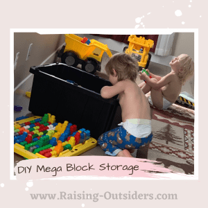 When we packed our house we decided to use the Black and yellow heavy-duty totes from Home depot. That way everything stacked nicely in the moving process. I decided that after they were several empty to use one as a block bin. It held all the blocks perfectly.